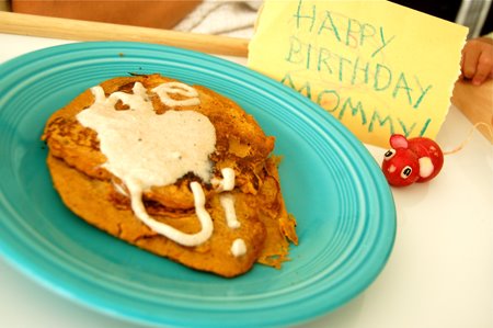 Happy Birthday! I recently found your blog and I love it. My little Nora is the same age as your little Brave. Could you post the recipe for your pumpkin pancakes?- they look wonderful. Thanks for such an inspiring blog.